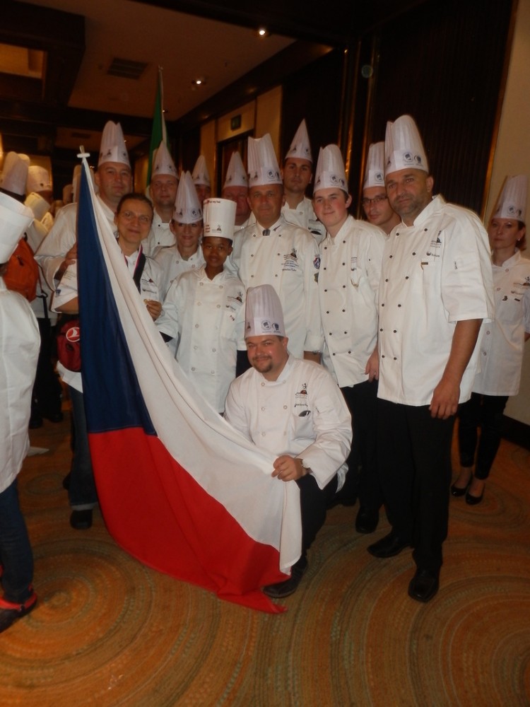 A jakým kulinářstvím se náš tým představil? Z menu českého týmu mohli obyvatelé JAR ochutnat například játrovou paštiku nebo těstovinový salát jako předkrm, bramborovou polévku, svíčkovou na smetaně s karlovarským knedlíkem, kuře na paprice s knedlíkem, pečené vepřové maso s kyselým zelím a bramborovým knedlíkem jako hlavní jídlo.
