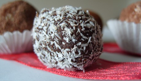 Všechny ingredience smícháme a tvarujeme koule, které obalujeme v kokosu. Pokud je těsto řídké, lze jej zahustit strouhankou, nebo přidat více mletých ořechů.