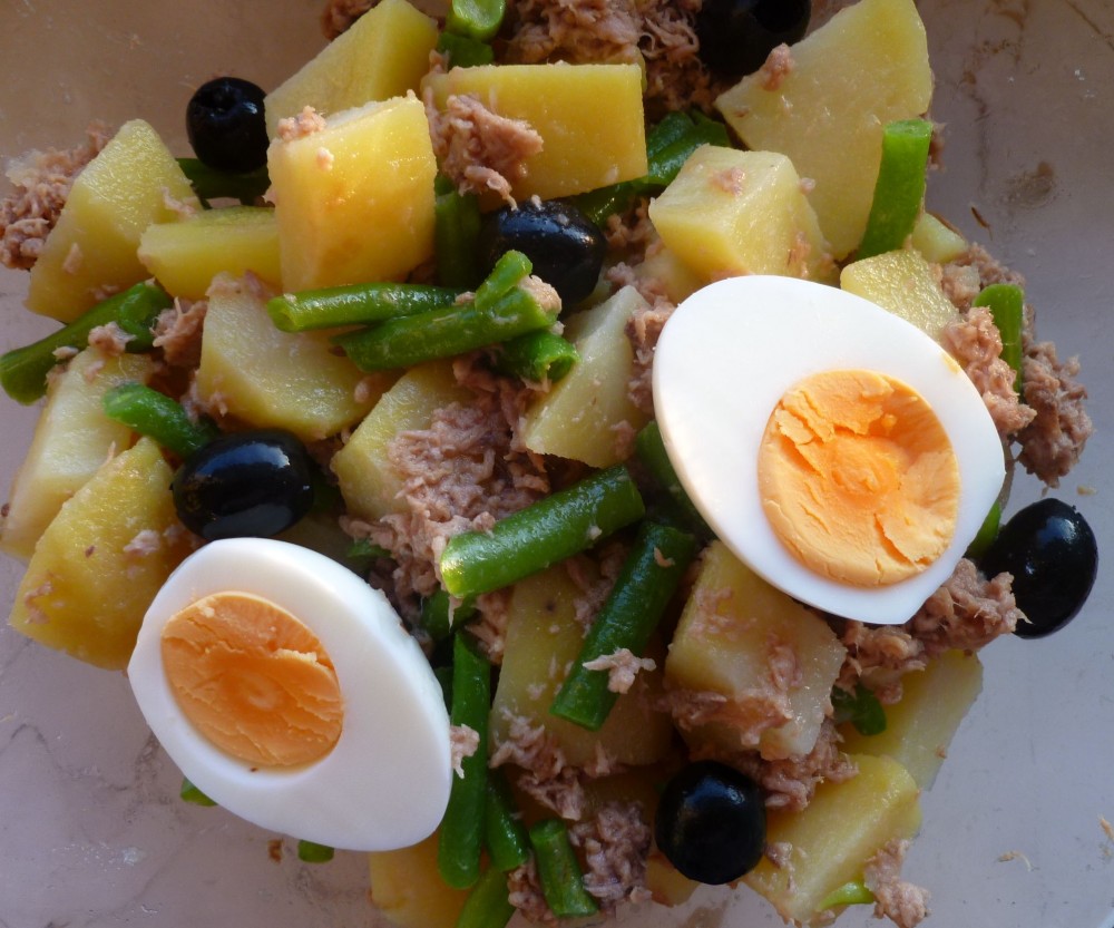 Připravte si zdravý a chutný salát na ochranu před podzimními nemocemi. Základní ingredience najdete jistě ve spíži a mrazničce: fazolové lusky, vejce a tuňák v konzervě. K nim se dají přidat vařené brambory, olivy, rajčata nebo ančovičky.