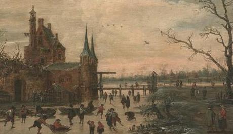 Bruslaři před městskými hradbami, Esaias van de Velde