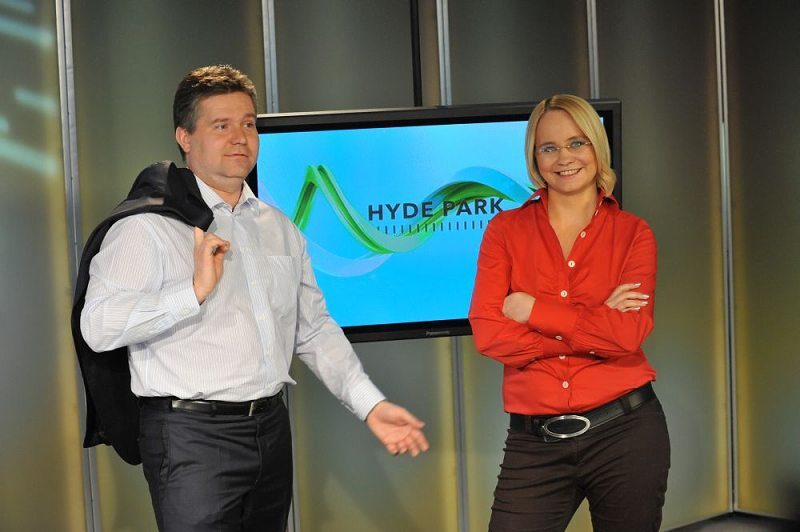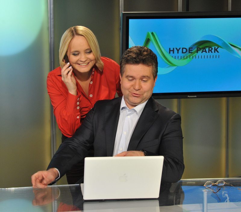 Daniel Takáč s kolegyní Pavlínou Kvapilovou ve studiu Hydeparku, Zdroj: ceskatelevize.cz