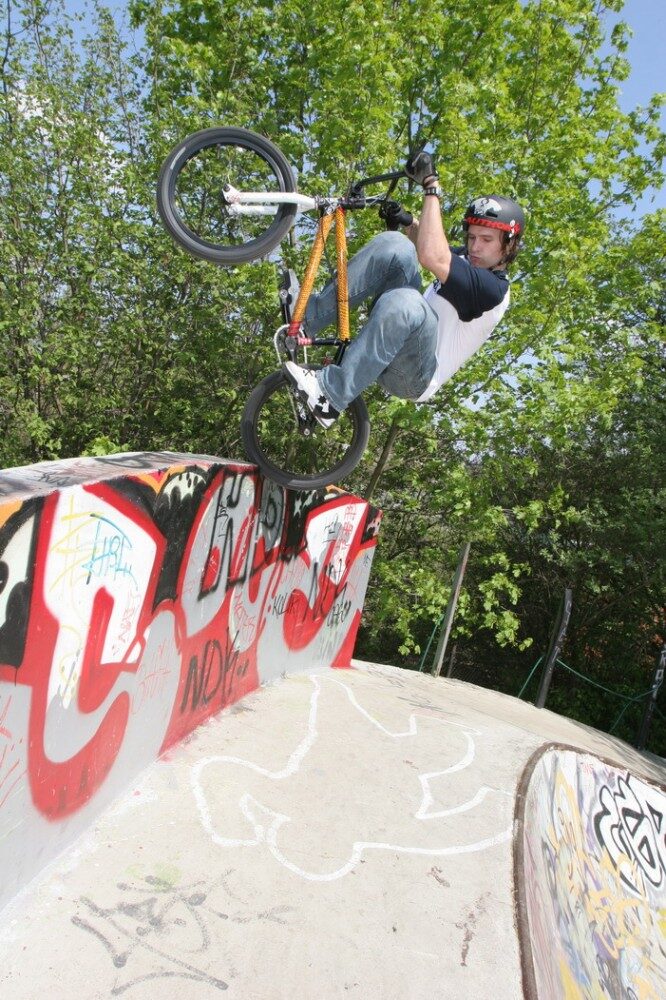 Jezdím vertikální rampu. To je největší Urampa, která v Profi mezinárodní podobě má cca kolem 4, 2 m na výšku. Jezdec pak provádí své triky ještě klidně kolem dalších 4m nad samotnou rampu. Disciplíně se také říká královská, protože málokdo si na velkou rampu troufne.