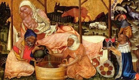 Iluminovaný rukopis mírně erotických básní Rosa rosensis oslavuje znak Rožmberků – pětilistou červenou růži, Zdroj: Národní galerie