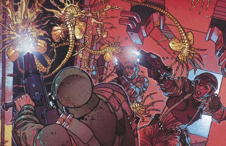 Ilustrace na obálce komiksu Vetřelci 4, autor: Kilian Plunkett