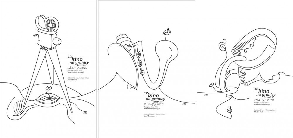 Filmová přehlídka Kino na hranici zve k prohlídce a interpretaci série plakátů ke svému 12. ročníku. Jedná se o 6 grafických návrhů, které se vztahují k jednotlivým filmovým cyklům a jejichž autorem je Bohdan Heblík.