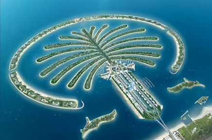 Letecký pohled na jediný komplex umělých ostrovů Palm Islands, který je vidět i z kosmu, Zdroj: nation-branding.info