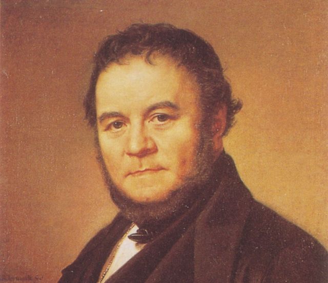 Francouzský romanopisec Stendhal (1783–1842), vlastním jménem Henri Beyle, je představitelem přechodového období mezi romantismem a realismem. Byl zarytým stoupencem Napoleona, účastnil se vojenského tažení do Ruska. Po Napoleonově pádu žil v Itálii, kde se pohyboval v revolucionářském prostředí a kde vzkvétal jeho obdiv k renesanci. K jeho nejznámějším románům patří Červený a černý (1830) a Kartouza parmská (1839). Je rovněž tvůrcem dvou nedokončených románů, Lucien Leuwen a Lamiel. Napsal také několik teoretických studií o umění a umělcích, mezi nimi například Mozartův životopis či esej Racine a Shakespeare, která je věnovaná úvahám o romantismu.