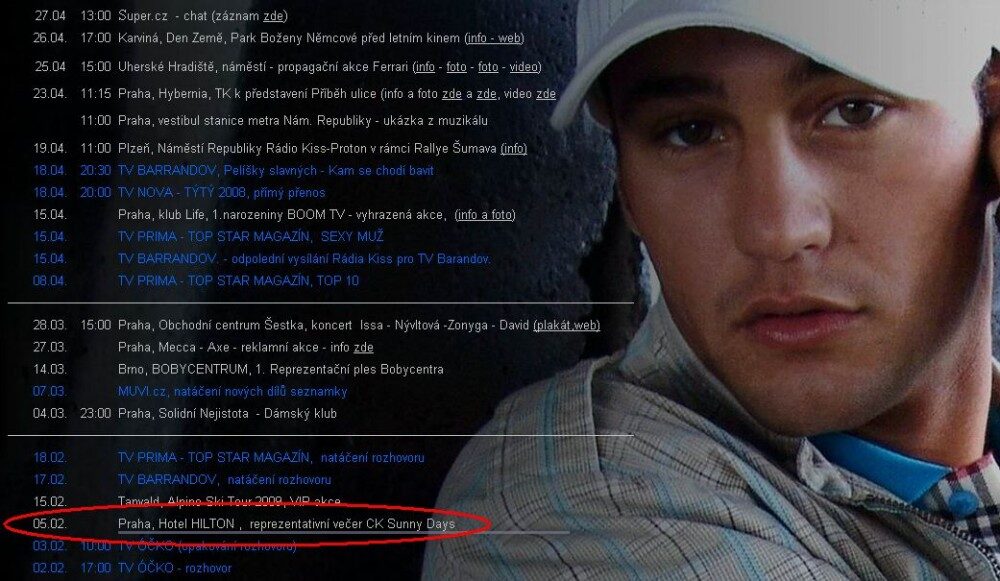 Jedním ze stále spokojených zákazníků Sunny Days je tedy pravděpodobně finalista první řady televizní estrády Česko hledá SuperStar, Sámer Issa, který se s majitelem cestovní kanceláře velmi často potkával na plesech Sunny Days a dalších akcích s pořádným zástupem českých celebrit. Koneckonců, loni touto dobou, konkrétně 5. února, si užíval v pražském hotelu Hilton na reprezentativním večeru CK Sunny Days, kam dorazil i expremiér Gross s manželkou a mladý Topolánek.