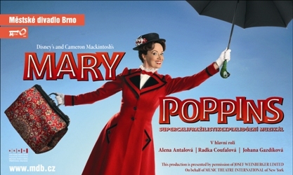 FOTO: Chůva Mary Poppins    Zdroj: Městské divadlo BrnoMěstské divadlo Brno se stalo teprve 6. divadlem světa, kterému byla exkluzivně udělena licence pro uvádění úžasného muzikálu Mary Poppins. A brněnské hlediště je pokaždé zaplněné do posledního místa, protože přepis stejnojmenné dětské knížky anglické autorky P. L. Traversové se velmi líbí všem věkovým kategoriím.