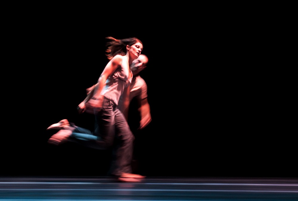 Chůze, běh, pád, vzestup, konec a znovu začátek. Vede je nevysvětlitelná touha běžet. Jsou ztělesněním lidského údělu, evoluce člověka i přerodu vesmíru. Nejen to zpodobňuje inscenace Sideways Rain.