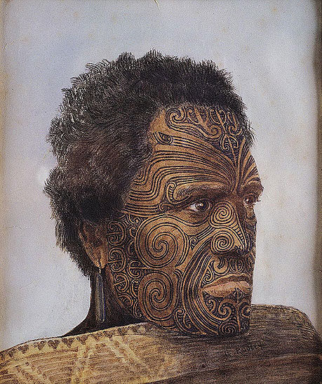 Maorské obličejové tetování nazývané moko. Zdroj: fletchercollection.co.nz
