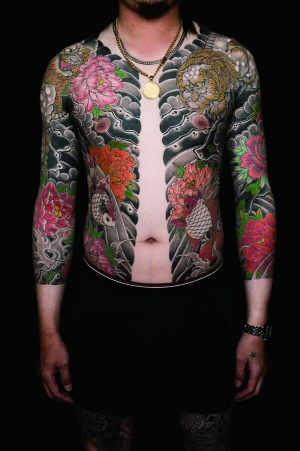 I rozsáhlé tetování může být uzpůsobeno tak, aby jej formální oblečení kompletně zakrývalo. Zdroj: japanese-style-tattoo.blogspot.com
