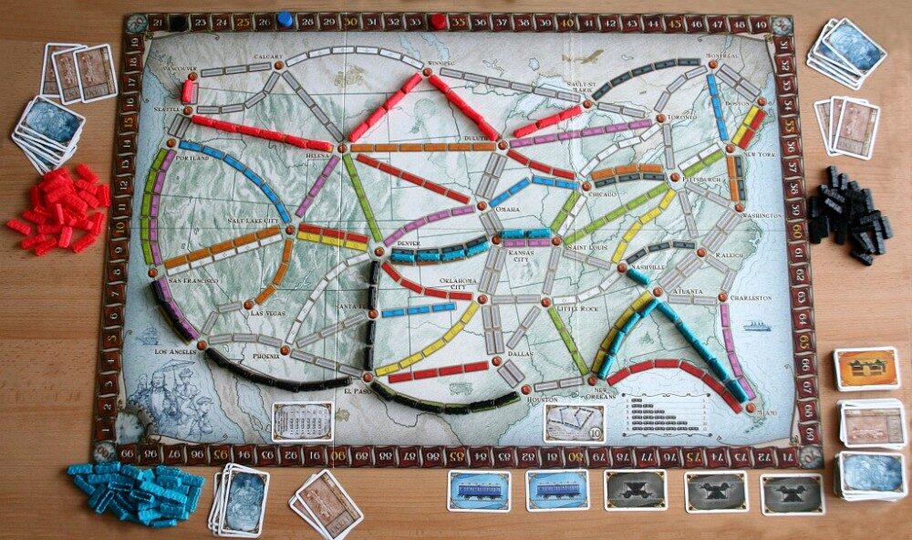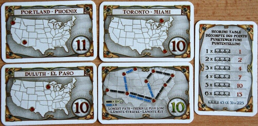 Jenže ke spojení sousedních dvou měst, potřebujete držet v ruce dostatečný počet karet té barvy, pomocí níž je trať znázorněna. Za každá vagónky spojená města dostanete jeden až patnáct bodů v závislosti na délce – nejkratší trať čítá jeden, nejdelší šest vagónků.
