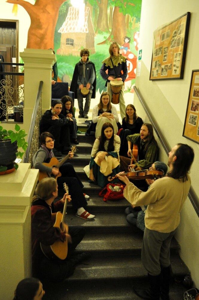 Poté přišla na řadu tancovačka. Ale ne jen tak ledajaká, jednalo se o lekce irsko-skotských tanců. Zůstává otázkou, zdali vyučující vybrala naschvál ty nejobtížnější tance, nebo jsou takové všechny. Rozhodně to mnoho lidí mršilo (sám jsem měl problémy), což ale zážitek nijak nesnižovalo, ba naopak byla o to větší zábava. Avšak tím se všichni totálně vyčerpali a u poslední přednášky Františky Vrbenské bohužel část sálu napůl spala… sám jsem příkladem. Ale na kvalitách to přednášce neubíralo.