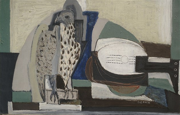 Mezi vybranými díly bude také E. Filla: Zátiší se sokolem a mandolínou. Zdroj: Repro GASK.