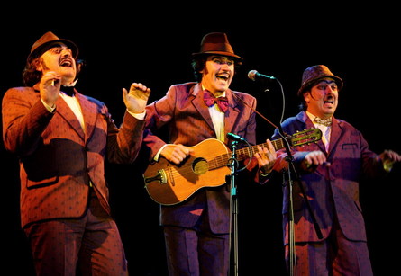 Tři muži v hnědých oblecích, na hlavě klobouky, pod nosy kníry, trojhlasně zpívající pam pam rampampam – to jsou Tros Sketos, tak jak se proslavili. V pondělí 20. prosince, opět po roce, vystoupí v pražském paláci Akropolis.