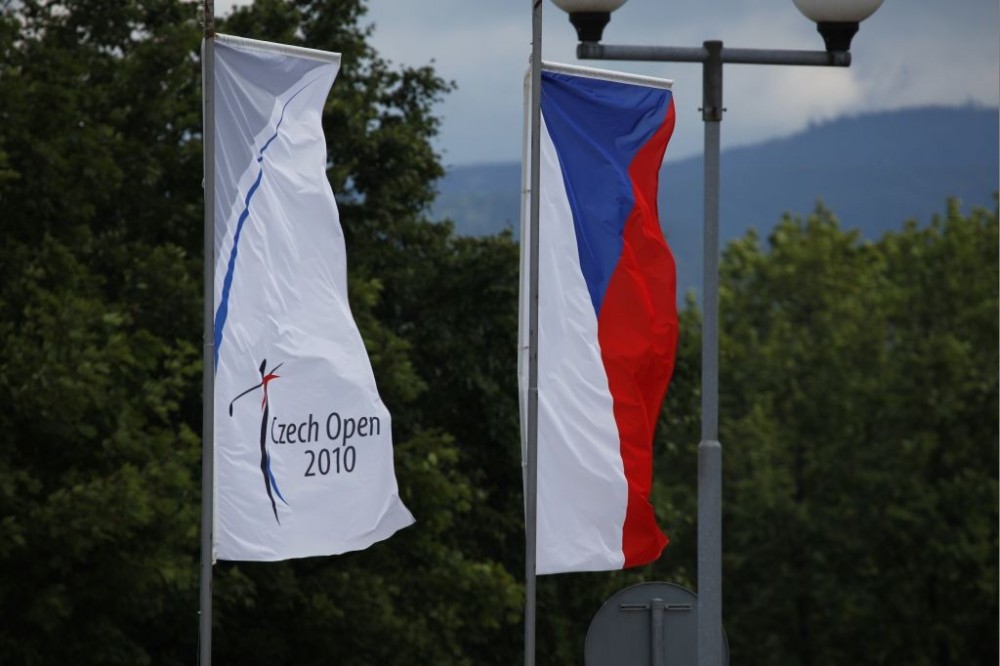 Vlajka s logem Czech Open 2010 a státní vlajka České republiky