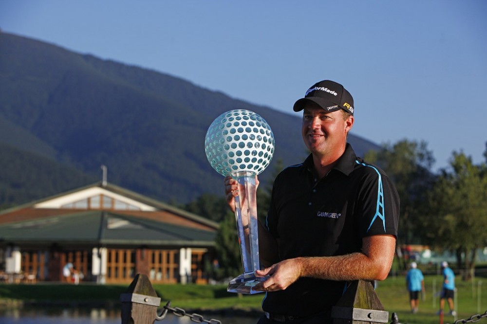 Peter Hanson s trofejí pro vítěze Czech Open 2010 Zdroj: czechopen2010.cz