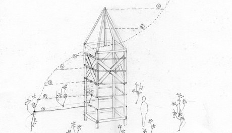 Stavbu nyní tvoří několik mladých stromků rozmístěných do kruhu o průměru osmi metrů. Ve středu stojí věž z dřevěných trámů, ke které jsou stromy uvázány tenkými provazy. Kostra pomáhá dosáhnout požadováného tvaru budovy. Kmeny od sebe rostou ve stejných vzdálenostech. Výjimku tvoří pouze dva páry, mezi nimi vznikne postupným tvarováním větví schodiště i se zábradlím. Schody povedou do patra z korun stromů.