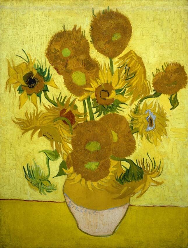 Spojení impasta a pointilismu, výsledek popsatelný jako krátké tahy hutné barvy, se objevuje snad ve všech nejoslavovanějších obrazech tohoto zrzavého podivína. Nezapomenutelnými příklady jsou Slunečnice (1888), Autoportrét (1887) a Hvězdná noc (1889), jedna z mála důležitých děl, která ve Van Goghově galerii bohužel nenaleznete.