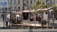 Improvizovaný výstavní pavilon Fóra Věda žije v ulici Na Příkopech, Zdroj: Věda žije!