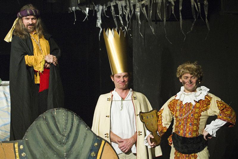 Za zmínku stojí jednoduché ale plně funkční kulisy zvířat. Král Adrian Jastraban, který má tak vysokou korunu, že málem neprojde dveřmi, si přivede papírového velblouda. „Prr,“ nařídí směrem k velbloudovi.