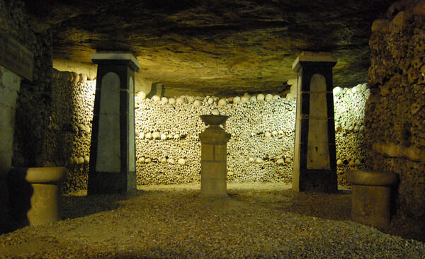 Po návštěvě katakomb budete mít zaručeně zlé sny. Začaly vznikat již ve starověku, kdy Římané pod Paříží dolovali kamení. Od roku 1780 se katakomby staly úložištěm lidských ostatků ze zrušených hřbitovů, které musely ustoupit nové městské zástavbě. Do roku 1814 již byly do katakomb umístěny ostatky více než šesti milionů lidí. V současnosti mají katakomby několik set kilometrů chodeb v hloubce kolem 20 metrů pod celou Paříží, z nichž je jen část (asi 2km) zpřístupněna návštěvníkům.