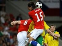 Naši si vytvořili šance, ovšem s jejich proměňováním byli poněkud na štíru. V plné parádě to ukázal útočník Milan Baroš, který krátce před poločasem dostal od izraelského arbitra dárek v podobě penalty. Baroš, vědom si nepravosti vůči Litevcům, kteří se proti rozhodnutí muže s píšťalkou celkem oprávněně ohrazovali, se zachoval jako pravý rytíř a poslal míč jen do připraveného gólmana Karčemarskase. Toť dění v první části.